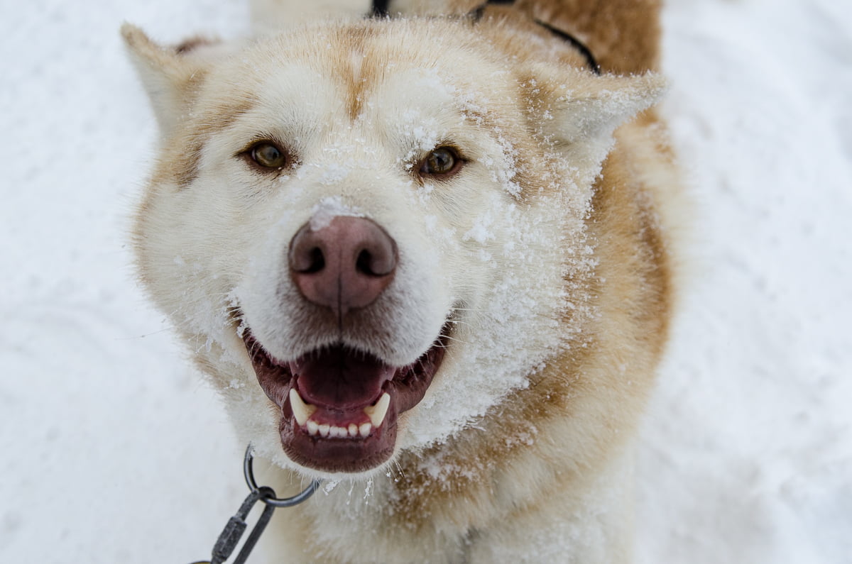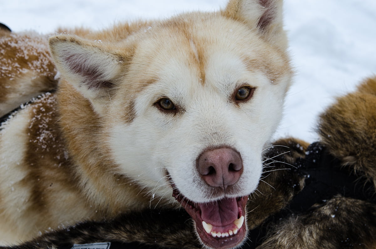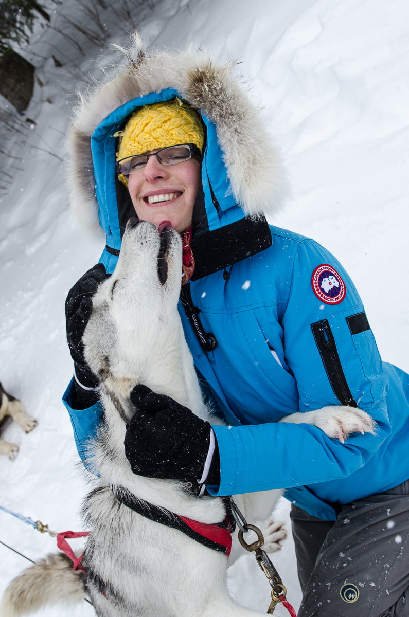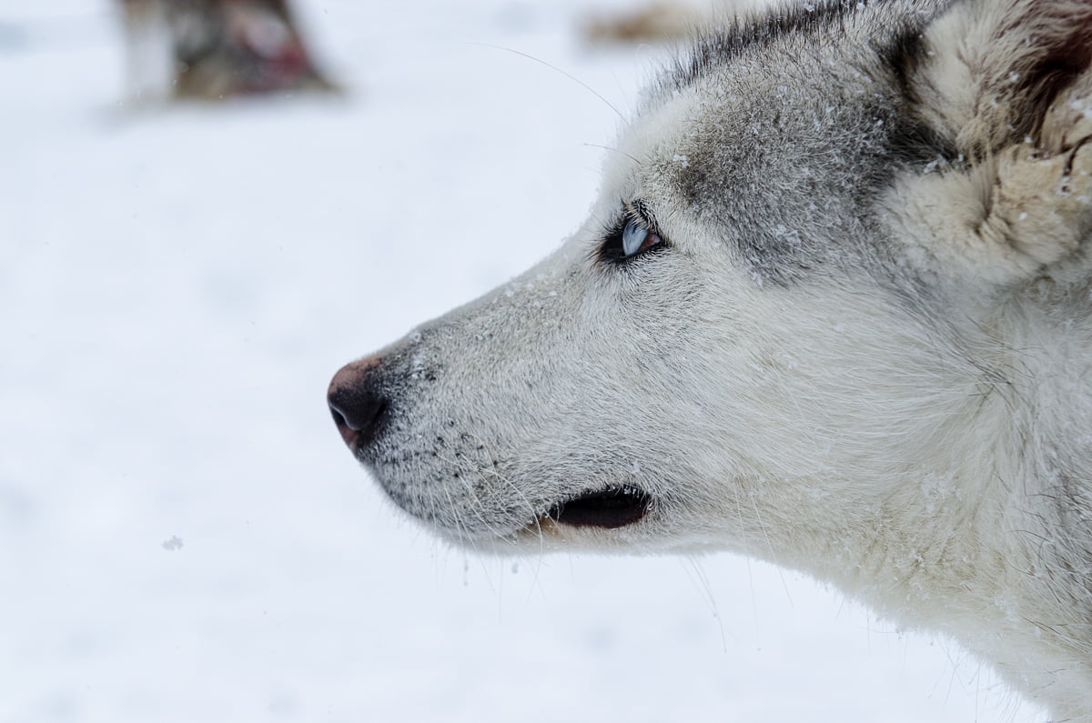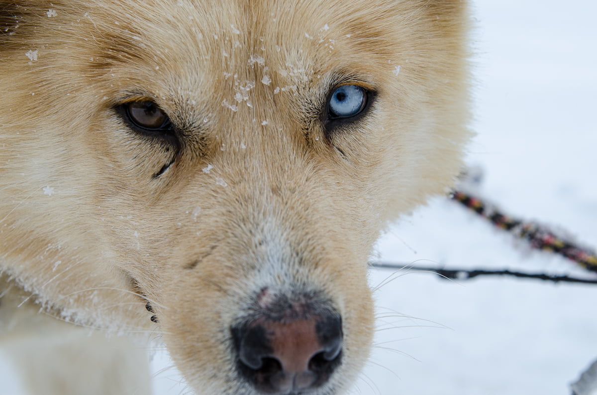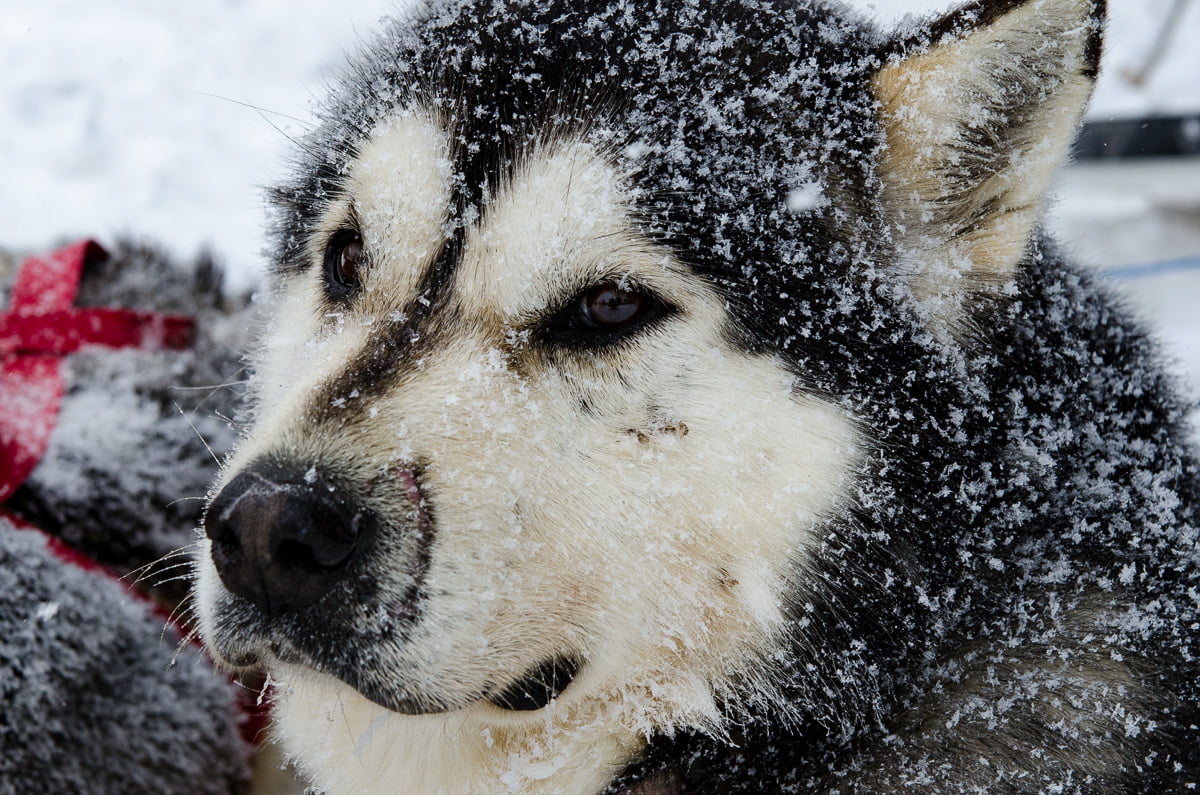 Pour ne pas tomber dans le cliché de simple photos d’animaux de compagnie, je me suis essentiellement concentré sur la tête de ces magnifiques bêtes. Ce jour là, la météo était des plus canadiennes, avec une belle tempête de neige, ce qui rendait encore plus authentique ces animaux habitués aux territoires du grand nord.